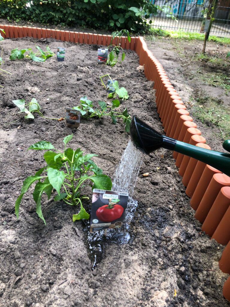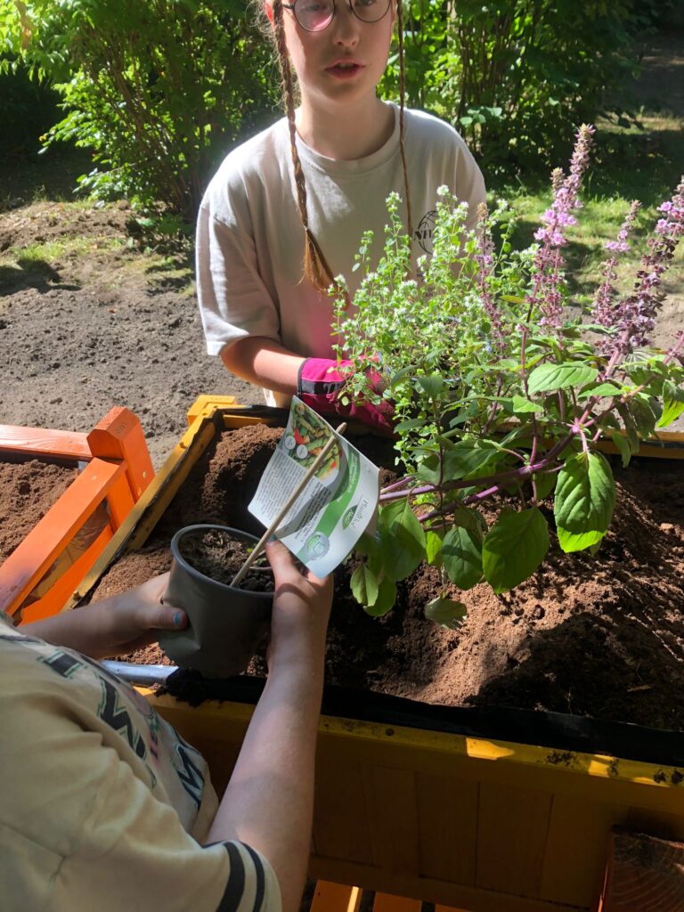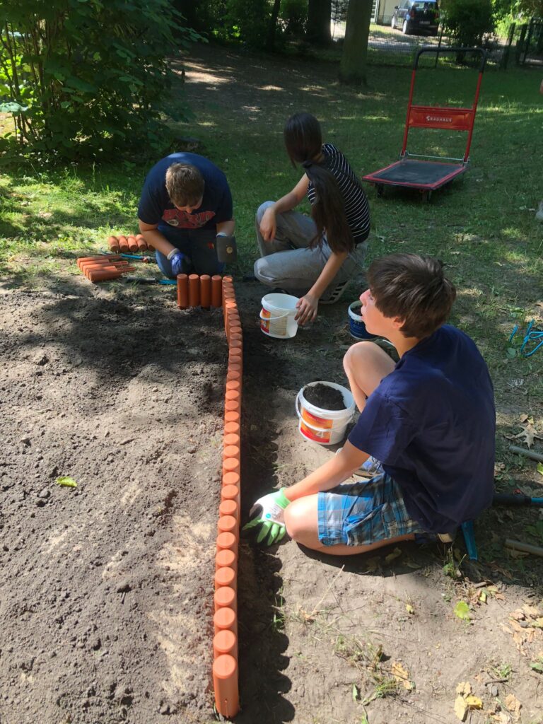 Am dritten Tag haben wir unser Beet noch weiter aufgelockert und schließlich mit vielen unterschiedlichen Insekten- und Wildbienen-freundlichen Pflanzen bepflanzt. Die Blumen sind eine großzügige Spende von Herrn Langner.